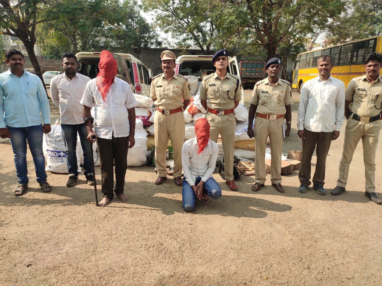 4) तुकाराम शेषराव बुंदराळे सर्व राहणार आनंदवाडी तालुका चाकूर. यांचे विरुद्ध गुन्हा दाखल करण्यात आला आहे. शिवाय सदरची कारवाई करीत असताना आरोपीने कारवाईत अडथळा आणल्याप्रकरणी नमूद गुन्ह्यातील कलम वाढ करण्यात आलेली आहे, तसेच आणखीन एका फार्महाऊसवर कारवाई करत 100 किलो वजनाचे चंदनाची गाभा व त्या मालाच्या वाहतुकीसाठी वापरण्यात येणारे पांढरी रंग याची महिंद्रा स्कार्पिओ जीप असा एकूण 08 लाख रुपयाचा मुद्देमाल जप्त करण्यात आला असून पोलीस अंमलदार पिराजी पुट्टेवाड यांचे फिर्यादीवरून आरोपी नामे