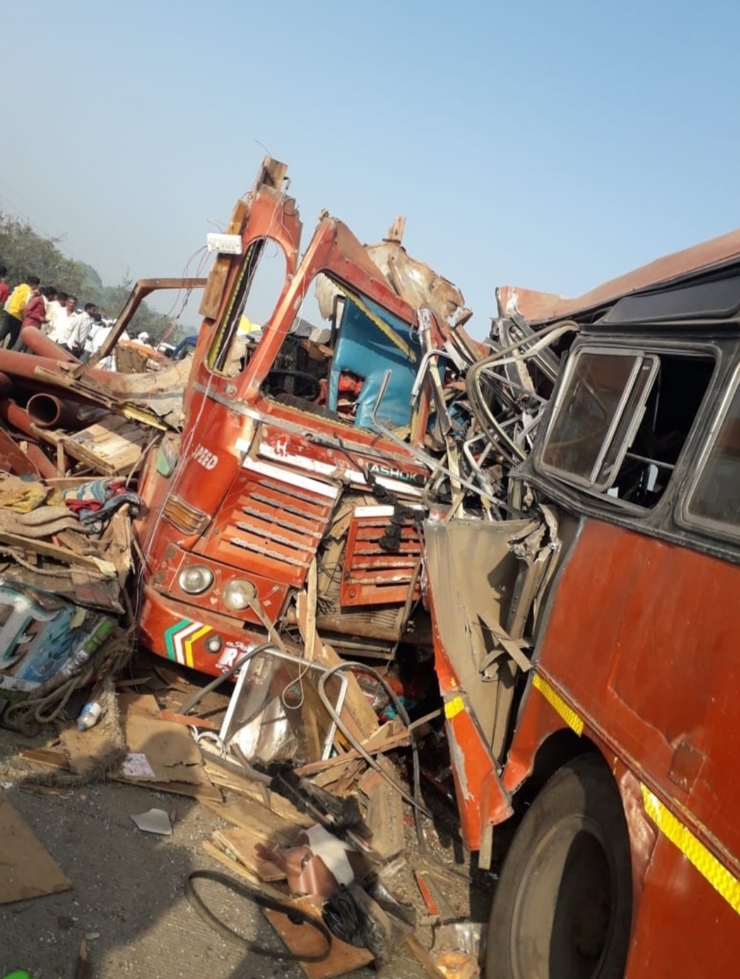 अंबाजोगाई : {प्रतिनिधी }लातूर-अंबाजोगाई या राष्ट्रीय महामार्गावर बर्दापूर जवळील सायगाव नजीकच्या नंदगोपाल डेअरी जवळ ट्रक आणि एस. टी. बसचा भीषण अपघात झाला. या अपघातात चौघांचा जागीच मृत्यू झाल्याची घटना रविवार दि. ९ रोजी सकाळी ८.३० वाजता घडली.अंबाजोगाई तालुक्यातील सायगावनजीक सकाळी एम. एच. २० बी. एल. ३०१७ औरंगाबाद आगाराची बस लातूरहुन अंबाजोगाई मार्गे औरंगाबादकडे व ट्रक क्रमांक के. ए. ५ ई ५४९४ ही अंबाजोगाईहून लातूरकडे जात असताना वाटेत धुके पडल्याने नंदगोपाल डेअरी जवळ असलेल्या खडी केंद्रानजिक बस-ट्रकची जोराची धडक बसल्याने बस मधील ४ प्रवाशी ठार तर १४ प्रवासी जखमी झाले आहेत. या बसमध्ये २० प्रवासी प्रवास करत होते. त्यात वाहकासह इतर ४ जणांचा जागीच मृत्यू झाला तर १४ जण जखमी झाले असुन जखमीना अंबाजोगाई येथील स्वामी रामानंद तीर्थ वैद्यकीय महाविद्यालय व शासकीय ग्रामीण रुग्णालय येथे तातडीने दाखल करण्यात आले. हा अपघात एवढा भीषण होता की क्रेनच्या साह्याने दोन्ही वाहने बाजूला करुन जखमींना बाहेर काढावे लागले जखमीवर उपचार सुरु आहेत.या भीषण अपघातात आदिल सलीम शेख वय २९ रा. अंबाजोगाई, चंद्रशेखर मधुकर पाटील ( वाहक ) वय ३९ रा. कांचनवाडी औरंगाबाद, नलिनी मुकुंदराव देशमुख वय ७२ रा. ज्योतीनगर औरंगाबाद व सादेक पटेल वय ५५ वर्ष रॉकी नगर मशिदजवळ लातूर या चौघांचा जागीच मृत्यू झाला. तर सुंदरराव ज्ञानोबा थोरात वय ५०,राहणार पांगळी ता. धारुर, हरिनाथ रंगनाथ चव्हाण वय ६७ रा. लातूर, असमत अतिम पठाण ३८ वर्ष लातूर, जियान फतीमा पठाण वय १० लातूर, अलादीन अमीर पठाण वय २० निलंगा, योगिता भागवत कदम वय ४० वर्षे लातुर, भागवत निवृत्ती कांबळे ५५ लातूर, संगीता बजरंग जोगदंड वय ४४ वर्षे लातुर, दस्तगीर आयुब पठाण वय १९ वर्षे निलंगा, सुभाष भगवान गायकवाड ४३ वर्षे पिंपळगाव , आयान पठाण १३ वर्ष लातुर, माधव नरसिंग पठारे ६५ जालना, बळीराम संभाजी कराड वय २२वर्ष रा.खोडवा सावरगाव, प्रकाश जनार्दन ठाकूर वय ५५ वर्षे हे १४ प्रवासी जखमी झाले आहेत,या अपघातानंतर हा संपूर्ण रस्ता बराच वेळ जाम झाला होता. मात्र, काही वेळाने अपघातग्रस्त बस क्रेनच्या साह्याने हटविण्यात आली. ज्यानंतर येथील सगळी वाहतूक ही पूर्ववत झाली. अपघाताची माहिती मिळताच घटनास्थळी अप्पर पोलीस अधीक्षक कविता नेरकर, उपविभागीय अधिकारी शरद झाडके, उपविभागीय पोलीस अधिकारी सुनील जायभाय, तहसीलदार विपीन पाटील, ग्रामीण पोलीस ठाण्याचे पोलीस निरीक्षक वासुदेव मोरे यांच्यासह अंबाजोगाईचे आगार प्रमुख नवनाथ चौरे, यांच्यासह सायगाव, बर्दापुर येथील ग्रामस्थानी धाव घेवुन मदत कार्य केले.