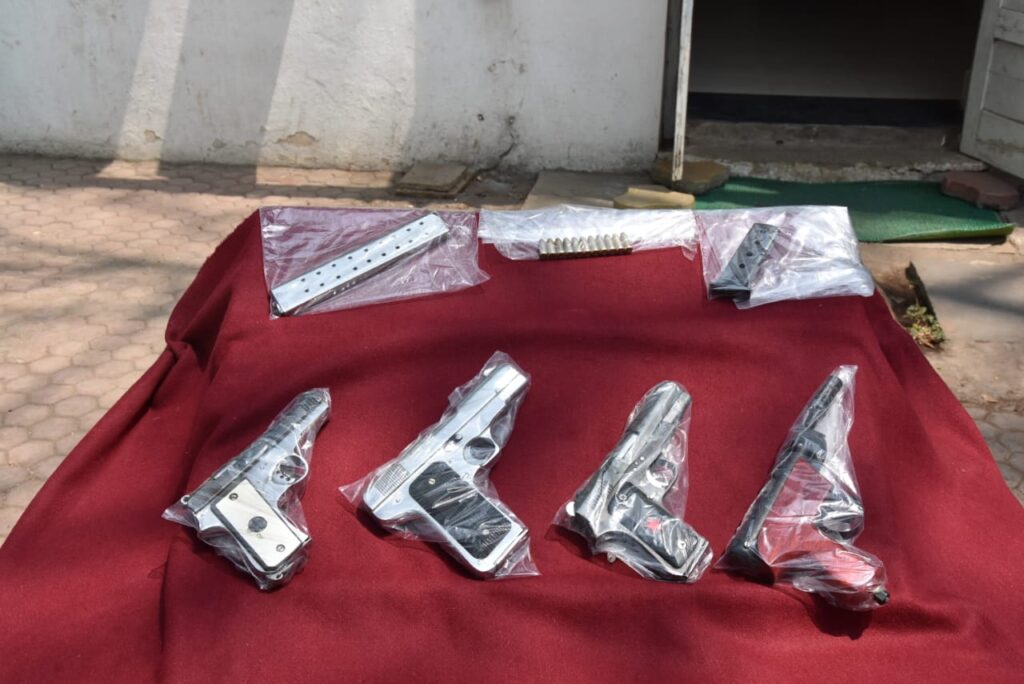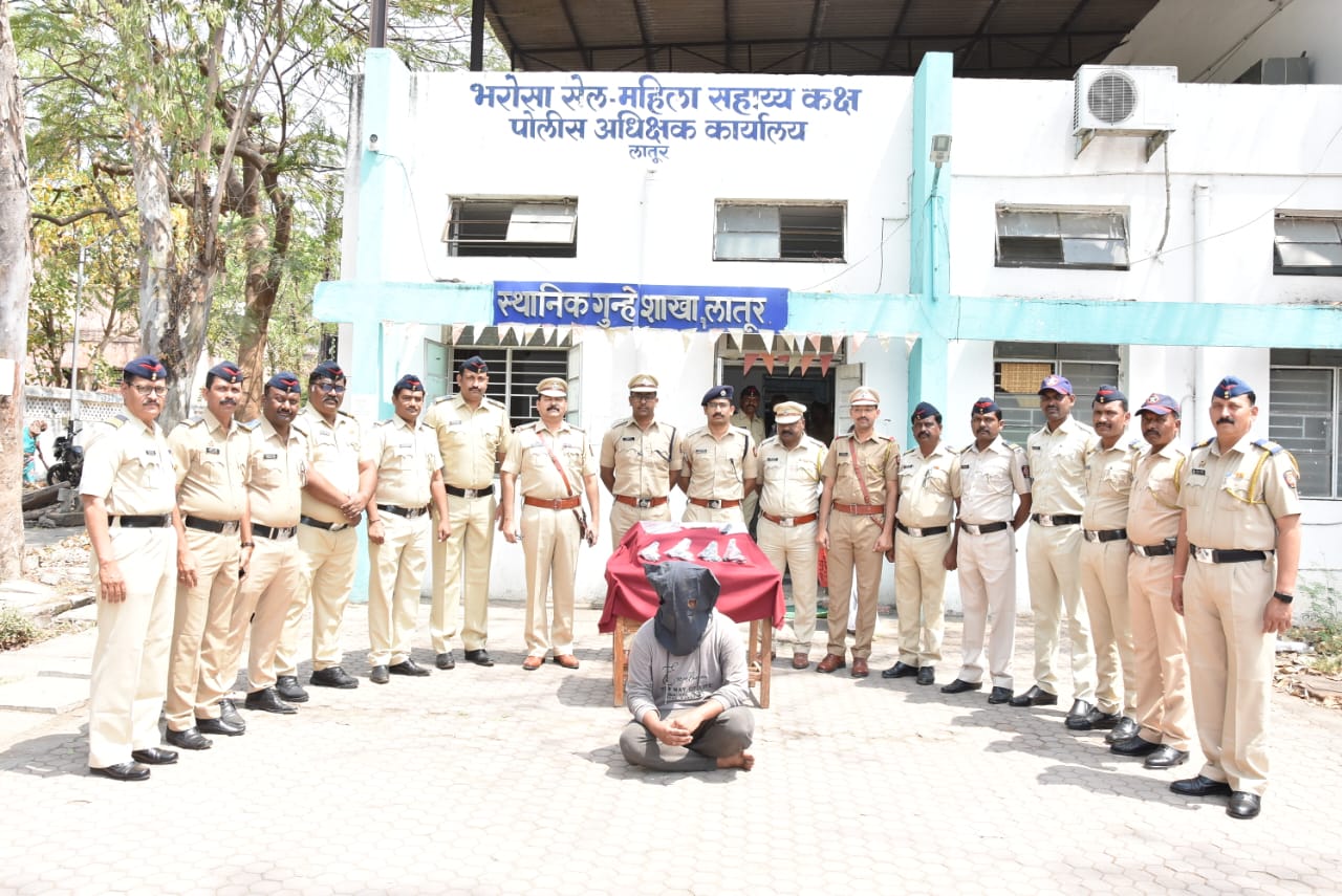 लातूर :- ( प्रतिनिधी ) लातूर जिल्हा पोलीस अधीक्षक श्री निखिल पिंगळे यांनी जिल्ह्यात अवैध शस्त्र बाळगणाऱ्या इसमावर कारवाई करण्याबाबत आदेशित केले होते याच अनुषंगाने पोलीस अधीक्षक निखिल पिंगळे , अप्पर पोलीस अधीक्षक अनुराग जैन सहाय्यक पोलीस अधीक्षक अभयसिंह देशमुख यांच्या मार्गदर्शनाखाली स्थानिक गुन्हे शाखेचे पोलीस निरीक्षक गजानन भातलवंडे यांच्या नेतृत्वात स्थानिक गुन्हे शाखेचे टीमने लातूर येथील एका इसमास ताब्यात घेऊन तीन गावठी कट्टे ( पिस्टल) सह अकरा जिवंत काडतुसे, दोन एक्स्ट्रा मॅगझीन असा एकूण 1 लाख 81 हजार रुपयांचा मुद्देमाल हस्तगत केला आहे , याबाबत सविस्तर माहिती अशी की, स्थानिक गुन्हे शाखा पोलिसांना गुप्त बातमीदार मार्फत मिळालेल्या गोपनीय माहितीच्या आधारावर स्थानिक गुन्हे शाखेच्या पथकाने लातूर शहरातील समीर सत्तार शेख (पांढरे ) रा.इंडिया नगर लातूर यास ताब्यात घेऊन त्याच्याकडून एक गावठी पिस्टल आणि नऊ जिवंत राऊंड जप्त केली. त्याच्याकडे पिस्टल आणि राउंड विषयी सखोल चौकशी केली असता. त्याने दिलेल्या माहितीच्या आधारावर स्थानिक गुन्हे शाखा पोलिसांनी अधिक तपास करून आणखीन एका व्यक्तीच्या घरातून दोन गावठी कट्टे पिस्टल, दोन मॅगझीन आणि दोन जिवंत काडतुसे असा एकूण 1 लाख 81 हजार रुपयाचा अवैध शस्त्र साठा जप्त केलेला आहे याप्रकरणी पोलीस ठाणे एमआयडीसी येथे गुन्हा रजिस्टर नंबर 161/2022 कलम 3 ( 25 ) भारतीय हत्यार कायदा अन्वये गुन्हा नोंद झालेला असून एमआयडीसी पोलिस पुढील तपास करीत आहेत सदरची कारवाई ही स्थानिक गुन्हे शाखेचे पोलीस निरीक्षक गजानन भातलवंडे यांचे नेतृत्वात सहाय्यक पोलीस निरीक्षक राहुल बहुरे, पोलीस अंमलदार खुर्रम काजी ,विनोद चीलमे, बालाजी जाधव, रवी गोंदकर ,दिनेश देवकते ,प्रमोद तरडे ,अंगद कोतवाड , यशपाल कांबळे ,संपत फड, राजेश कंचे, प्रदीप चोपणे, यांनी केली आहे