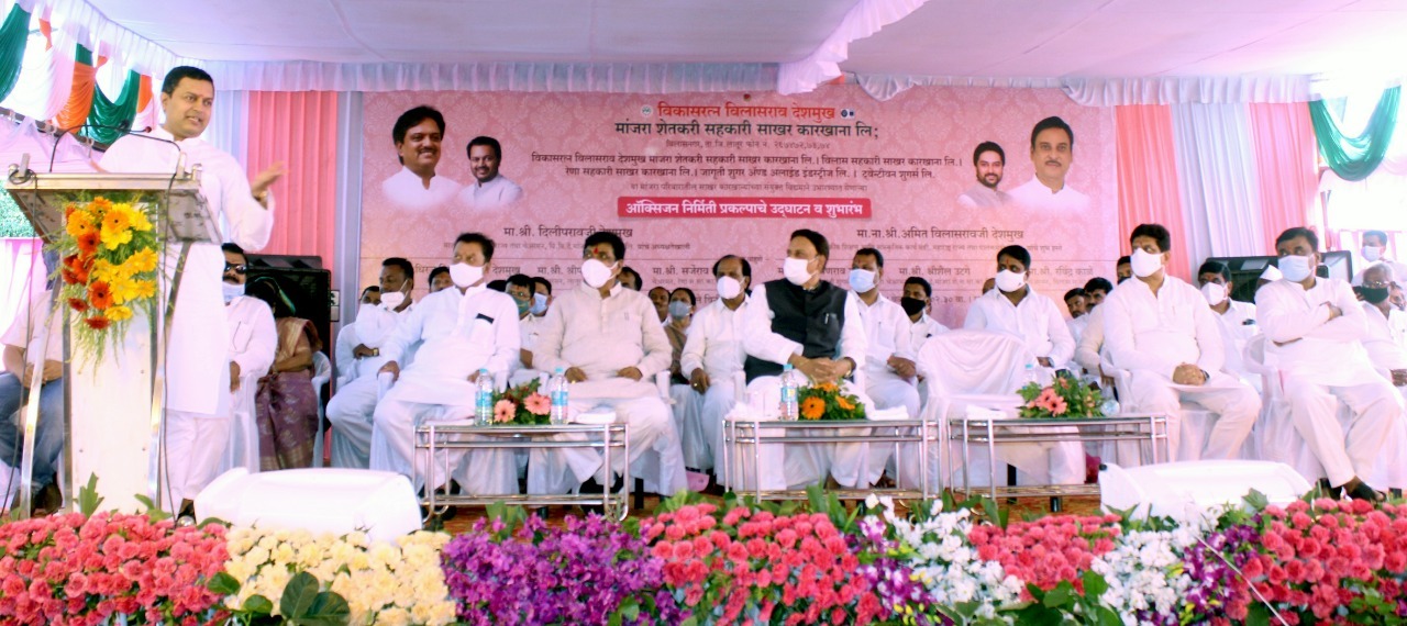 विलास नगर येथील विकासरत्न विलासराव देशमुख मांजरा शेतकरी सहकारी साखर कारखाना परिसरात मांजरा परिवाराच्या संयुक्त विद्यमाने उभारण्यात आलेल्या ऑक्सिनज निर्मिती प्रकल्पाचे उद्घाटन व शुभारंभ कार्यक्रम प्रसंगी ते बोलत होते. कार्यक्रमाच्या अध्यक्षस्थानी विकास रत्न विलासराव देशमुख मांजरा शेतकरी साखर कारखान्याचे अध्यक्ष तथा राज्याचे माजी मंत्री दिलीपराव देशमुख होते.