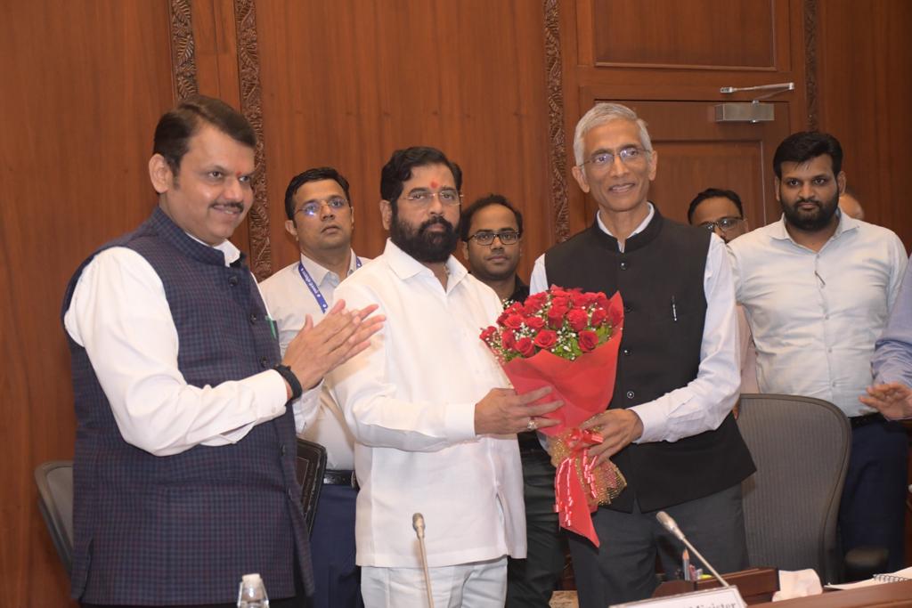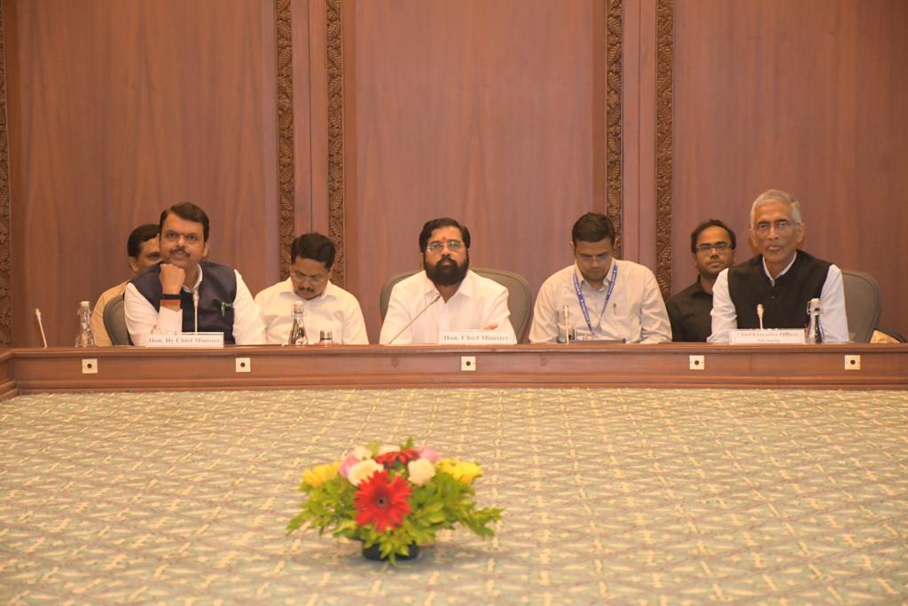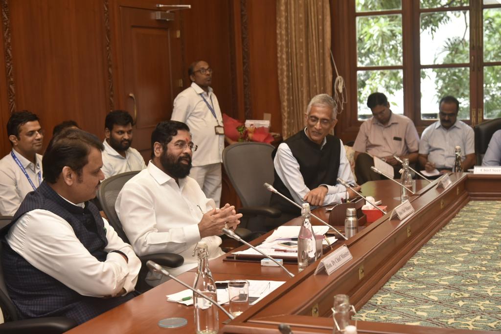 सह्याद्री अतिथीगृह येथे निती आयोगाचे मुख्य कार्यकारी अधिकारी परमेश्वरन अय्यर यांच्या आयोगातील तज्ञांनी आज मुख्यमंत्री श्री. शिंदे, उपमुख्यमंत्री देवेंद्र फडणवीस यांची भेट घेतली. यावेळी झालेल्या आढावा बैठकीत मुख्यमंत्री बोलत होते. मुख्य सचिव मनुकुमार श्रीवास्तव यांच्यासह राज्य प्रशासनातील विविध विभागांचे अपर मुख्य सचिव, प्रधान सचिव, सचिव उपस्थित होते.