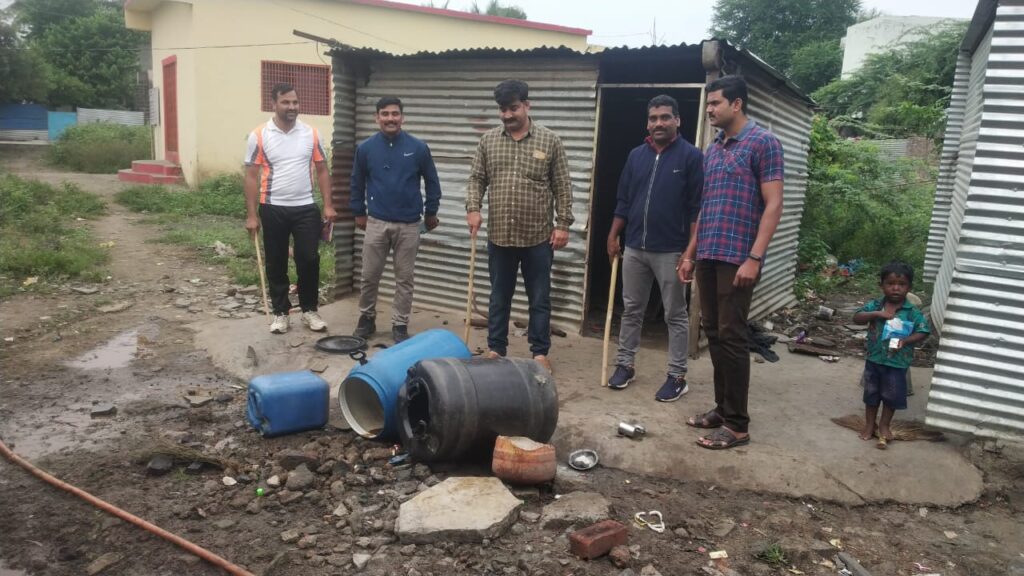 यावर पथकाने (पहीला छापा) सावरगाव (पु.) येथे 08.45 वा. सु. छापा टाकला असता तेथे भागुबाई उमराव पवार, रा. बायपास रोड, सावरगाव (पु.) या गावठी दारु निर्मीतीचा गुळ- पाणी मिश्रीत अंबवलेला सुमारे 100 लि. द्रव पदार्थ व 25 लि. गावठी दारु असा एकुण अंदाजे 6,250 ₹ किंमतीचा माल बाळगलेल्या आढळल्या. (दुसरा छापा )09.10 वा. सु. वायपास रोडजवळच असलेल्या सोमेश्वर ट्रेडींग कंपनीबाजूस टाकला असता तेथे सावरगाव (पु.) ग्रामस्थ- विकास हरी पवार, सायबाबाई बन्सी काळे, गणेश बसलिंगप्पा लोखंडे हे तीघे गावठी दारु निर्मीतीचा गुळ- पाणी मिश्रीत 100 लि. द्रव पदार्थ, 50 लि. गावठी दारु व नवसागर असा एकुण 7,900 ₹ चा माल बाळगलेले आढळले. (तीसरा छापा) 09.45 वा. सु. कळंब येथील जुनी दुध डेअरी परिसरात टाकला असता तेथे कळंब येथील- संतोष बब्रुवान काळे, राहुल राजेंद्र पवार, शालुबाई शिवा पवार, भैया बापु पवार व संतोष विठ्ठल पौळ हे सर्व गावठी दारु निर्मीतीचा गुळ- पाणी मिश्रीत 300 लि. द्रव पदार्थ व 05 लि. गावठी दारु व 15 कि.ग्रॅ. नवसागर असा एकुण अंदाजे 21,250 ₹ चा माल बाळगलेले आढळले. तर (चौथा छापा) 10.15 वा. सु. डिकसळ शिवारात टाकला असता तेथे डिकसळ ग्रामस्थ- सुरेखा बबलु काळे या गावठी दारु निर्मीतीचा गुळ- पाणी मिश्रीत 200 लि. द्रव पदार्थ व 55 लि. गावठी दारु असा एकुण अंदाजे 12,750 ₹ चा माल बाळगलेल्या असताना आढळल्या. यावर पथकाने चारही छाप्यातील गावठी दारु निर्मीतीचा एकुण सुमारे 700 लि. द्रव पदार्थ हा नाशवंत असल्याने तो जागीच ओतून नष्ट करुन सुमारे 135 लि. गावठी दारु गावठी दारु हस्तगत करुन नमूद व्यक्तींविरुध्द महाराष्ट्र मद्य मनाई कायद्यांतर्गत कळंब पोलीस ठाण्यात गुन्हा क्र. 374, 375, 376, 377/ 2022 हे 4 गुन्हे नोंदवले आहेत. सदरची कामगीरी मा. पोलीस अधीक्षक श्री. अतुल कुलकर्णी व अपर पोलीस अधीक्षक श्री. नवनीत काँवत यांच्या आदेशावरुन कळंब उप विभागाचे सहायक पोलीस अधीक्षक- श्री. एम. रमेश यांसह पोउपनि- श्री. पुजरवाड, श्री. मालुसरे, पोलीस अंमलदार- अंभोरे, साळुके, कांबळे, खांडेकर यांच्या पथकाने केली आहे.
