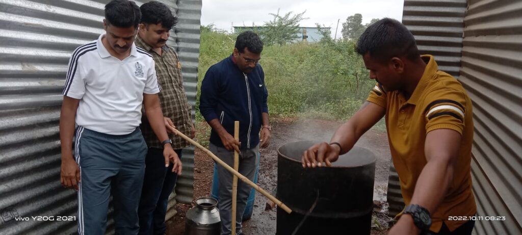 कळंब ( राहुल हौसलमल) कळंब उप विभागाचे सहायक पोलीस अधीक्षक एम रमेश यांसह त्यांचे पोलीस पथक उप विभागात अवैध मद्य विरोधी कारवाई साठी काल दि. 11.10.2022 रोजी पहाटे पासून गस्तीस होते. दरम्यान पथकास गोपनीय माहिती मिळाली की, सावरगाव (पु.) येथे, कळंब येथील जुनी दुध डेअरी परिसरात व डिकसळ शिवारात गावठी दारु निर्मीती होत आहे.