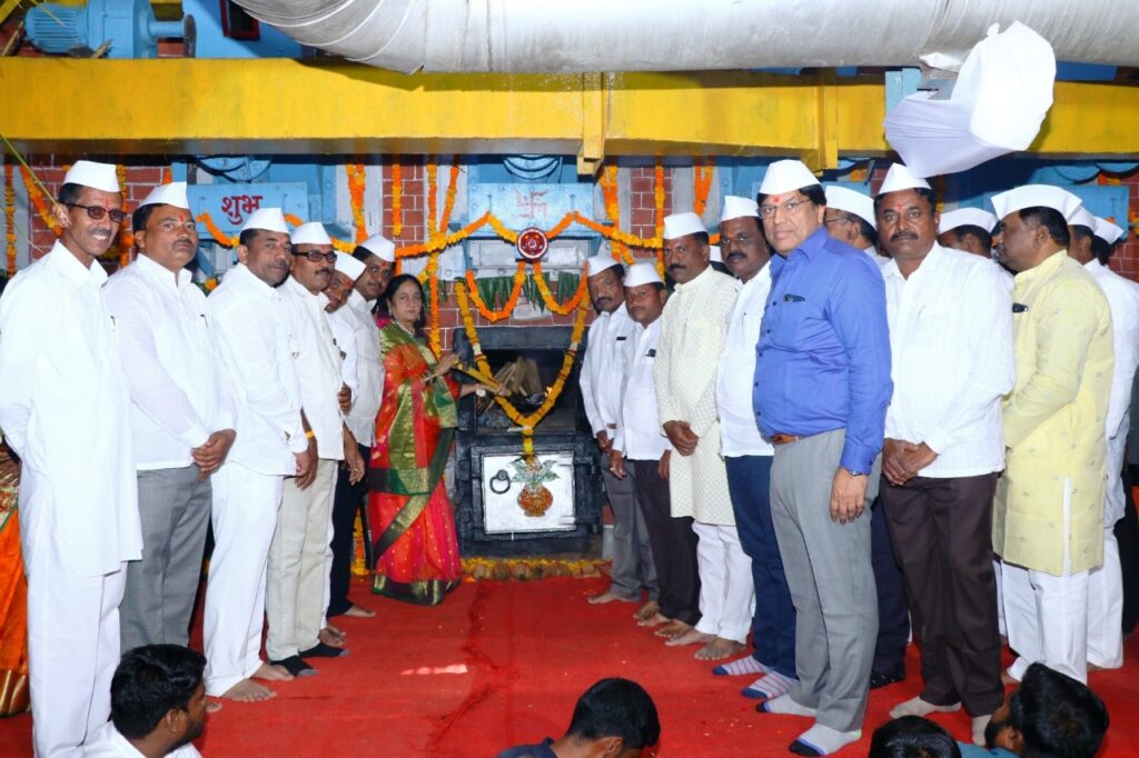 रवीवार दि. ३० आक्टोबर २०२२ रोजी सकाळी ११ वाजता विलास सहकारी साखर कारखाना लि. युनीट १ कारखान्याच्या चेअरमन वैशाली विलासराव देशमुख, रेणा सहकारी साखर कारखान्याचे चेअरमन सर्जेराव मोरे, लातूर जिल्हा मध्यवर्ती सहकारी बॅकेचे व्हा. चेअरमन ॲड. प्रमोद जाधव, रेणा कारखान्याचे व्हा. चेअरमन अनंतराव देशमुख व सर्व संचालकांच्या उपस्थितीत गळीत हंगाम सन २०२२-२३ चे कारखाना बॉयलर अग्निप्रदिपन व झेडएलडी प्रकल्पातील बॉयलर अग्निप्रदिपन करण्यात आले आहे. माजी मुख्यमंत्री आदरणीय लोकनेते विलासराव देशमुख यांच्या प्रेरणेने, सहकारमहर्षी माजी मंत्री दिलीपराव देशमुख, राज्याचे माजी वैदयकीय शिक्षण व सांस्कृतिक कार्यमंत्री तथा लातूर जिल्हयाचे माजी पालकमंत्री आमदार अमित विलासराव देशमुख, लातूर ग्रामिणचे आमदार धीरज विलासराव देशमुख व चेअरमन वैशाली विलासराव देशमुख यांच्या मार्गदर्शनाने गत हंगामात लातूर जिल्हा आणि मराठवाडयात अतिरीक्त ऊसाचा प्रश्न निर्माण झालेला असतांना लातूर तालुक्यातील निवळी येथील विलास सहकारी साखर कारखाना युनीट – १ ने दुपटीपेक्षा अधिक कार्यक्षमतेचा वापर करीत तब्बल ७ लाख ६३ हजार मे. टन ऊसाचे गाळप केले. कार्यक्षेत्रातील संपूर्ण ऊसाचे गाळप झाले नंतरच गाळप हंगाम बंद करण्यात आलेला आहे. तसेच गाळप केलेल्या ऊसाला विक्रमी म्हणजे प्रतिटन २७७५ रुपये भाव दिला आहे. गळीत हंगाम सन २०२२-२३ हंगामाची तयारी पूर्ण झाली असून या गळीत हंगामात देखील ऊसाचे क्षेत्र मोठया प्रमाणात उपलब्ध आहे. याकरीता आवश्यक तोडणी वाहतूक यंत्रणेचे व हार्वेस्टरचे करार पुर्ण करण्यात आले आहेत. कारखाना हंगामात पुर्ण क्षमतेने चालवण्याच्या दृष्टीने कारखाना मेन्टेनन्सची कामे पूर्ण झाली आहेत, अशी माहिती कार्यकारी संचालक संजीव देसाई यांनी दिली. गळीत हंगाम सन २०२२-२३ चे बॉयलर अग्निप्रदिपन चेअरमन वैशाली विलासराव देशमुख व सर्व संचालकांच्या उपस्थितीत महापूजा करून बॉयलर अग्निप्रदिपन करण्यात आले आहे. यावेळी चेअरमन वैशाली विलासराव देशमुख यांनी गळीत हंगाम सन २०२२-२३ यशस्वीतेसाठी सर्वांना शुभेच्छा दिल्या. या कार्यक्रमास व्हाईस चेअरमन रवींद्र काळे, कार्यकारी संचालक संजीव देसाई, संचालक सर्वश्री गोविंद बोराडे, युवराज जाधव, अनंत बारबोले, भैरवनाथ सवासे, गुरूनाथ गवळी, अनिल पाटील, बाळासाहेब बिडवे, रजित पाटील, गोविंद डुरे, सूर्यकांत सुडे, अमृत जाधव, रामदास राऊत, सुभाष माने, भारत आदमाने, संजय पाटील खंडापूरकर आदीसह कार्यक्रमास खाते प्रमुख, विभाग प्रमुख, सर्व कर्मचारी तसेच तोडणी-वाहतुक व पुरक कामाचे ठेकेदार उपस्थित होते. प्रारंभी बॉयलर अग्निप्रदिपन कार्यक्रमाची महापूजा संचालक युवराज जाधव व सौ. राधा जाधव आ
