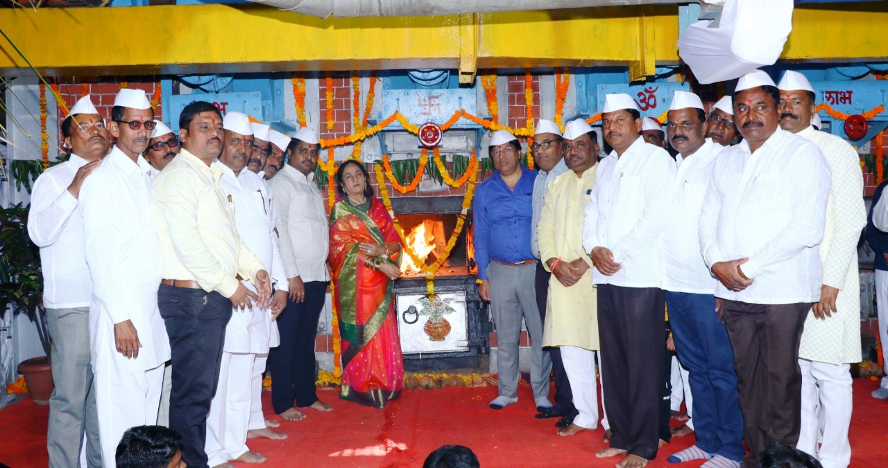 लातूर – दि.३० ( प्रतिनिधी) – विलास सहकारी साखर कारखाना वैशालीनगर, निवळी युनीट नंबर १ चे गळीत हंगाम सन २०२२-२३ चे बॉयलर अग्निप्रदिपन चेअरमन वैशाली विलासराव देशमुख व सर्व संचालकांच्या उपस्थितीत महापूजा करून बॉयलर अग्निप्रदिपन करण्यात आले आहे. यावेळी चेअरमन वैशाली विलासराव देशमुख यांनी गळीत हंगाम यशस्वीतेसाठी शुभेच्छा दिल्या. कारखाना चालू गळीत हंगाम पूर्ण क्षमतेने चालवून जास्तीत जास्त उसाचे गाळप करण्यास सज्ज झाला आहे. राज्याचे माजी वैदयकीय शिक्षण व सांस्कृतिक कार्यमंत्री तथा लातूर जिल्हयाचे माजी पालकमंत्री आमदार अमित विलासराव देशमुख यांच्या नेतृत्वाखाली उभारणी करून यशस्वी वाटचाल करीत असलेल्या वैशालीनगर, निवळी येथील विलास सहकारी साखर कारखाना गळीत हंगाम सन २०२२-२३ ची तयारी पूर्ण झाली आहे.