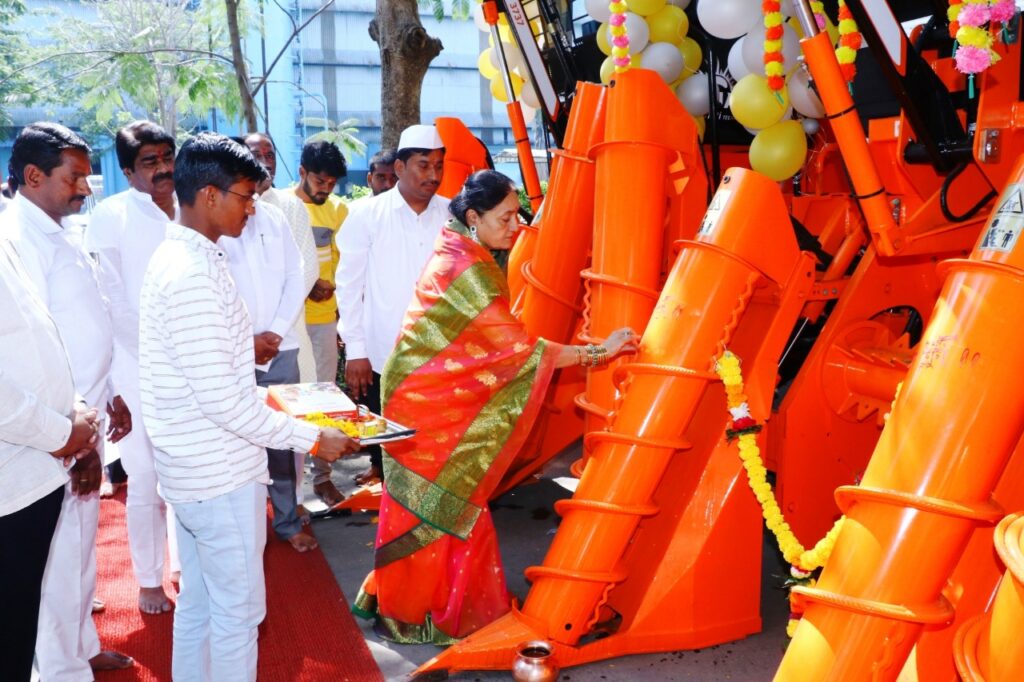 { सभासद व शेतकऱ्यांनी घेतलेल्या हार्वेस्टरचे चेअरमन वैशाली विलासराव देशमुख यांनी केले पूजन }