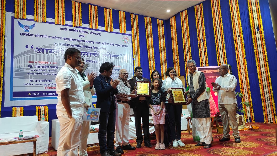लातूर( प्रतिनिधी)- महाराष्ट्रातील सुप्रसिद्ध नामांकित स्त्रीरोग प्रसूती शास्त्रज्ञ व विलासरावजी देशमुख शासकीय वैद्यकीय महाविद्यालय रुग्णालय येथील स्त्री रोग व प्रसुती शास्त्र विभाग प्रमुख सुप्रसिद्ध प्रा.डॉ.भाऊराव यादव यांना व त्यांची कन्या उर्वी भाऊराव यादव हीला नाशिक येथील आम्ही मार्गदीप प्रतिष्ठान औरंगाबाद व शासकीय अधिकारी व कर्मचारी संघटना महाराष्ट्र राज्य नाशिक यांच्या संयुक्त विद्यमाने 74 व्या भारतीय संविधान दिनानिमित्त आम्ही भारताचे लोक या दुसऱ्या विचार संमेलन संमेलनात “मार्ग दीप भूषण पुरस्काराने” सन्मानित करण्यात आले. आम्ही मार्गदीप प्रतिष्ठान औरंगाबाद यांच्या वतीने देण्यात येणारा मानाचा” मार्ग दीप भूषण पुरस्कार “त्यांच्या स्त्रीच्या आरोग्या विषयी सामाजिक कार्या, जनजागृती ,त्यांच्या उल्लेखनीय कामगिरी बद्दल देण्यात आला. व त्यांची मुलगी उर्वी भाऊराव यादव हिने दहावी मध्ये सीबीएससी पॅटर्न 500 पैकी 499 घेऊन उत्तीर्ण झाल्याबद्दल तिलाही मार्गदर्शक भूषण हा पुरस्कार देऊन सन्मानित करण्यात आले .यावेळी कार्यक्रमाचे उद्घाटक महाराष्ट्र साहित्य संमेलन परिषदेचे अध्यक्ष ज्येष्ठ साहित्यिक रावसाहेब कसबे ,कार्यक्रमाचे अध्यक्ष ज्येष्ठ विचारवंत उत्तम कांबळे , प्रमुख वक्ते म्हणून जे एन यु विद्यापीठाचे प्राध्यापक साहित्यिक शरद बाविस्कर ,मराठा महासंघाच्या प्रवक्त्या अँड वैशाली डोळस, सामाजिक कार्यकर्ते सुभाष वारे यांच्या उपस्थितीत देण्यात आला .यावेळी कार्यक्रमाचे आयोजक औरंगाबाद जिल्हा परिषदचे अतिरिक्त मुख्य कार्यकारी अधिकारी शिरीष बनसोडे,आदिवासी विकास विभाग महाराष्ट्र राज्याचे उपायुक्त प्रदीप पोळ , आदिवासी विकास विभागाचे उपायुक्त सुदर्शन नगरे व आम्ही मार्गदर्शन प्रतिष्ठान औरंगाबाद व शासकीय अधिकारी कर्मचारी संघटना नाशिक यांचे सर्व पदाधिकारी व सदस्य नागरिक मोठ्या संख्येने उपस्थित होते.