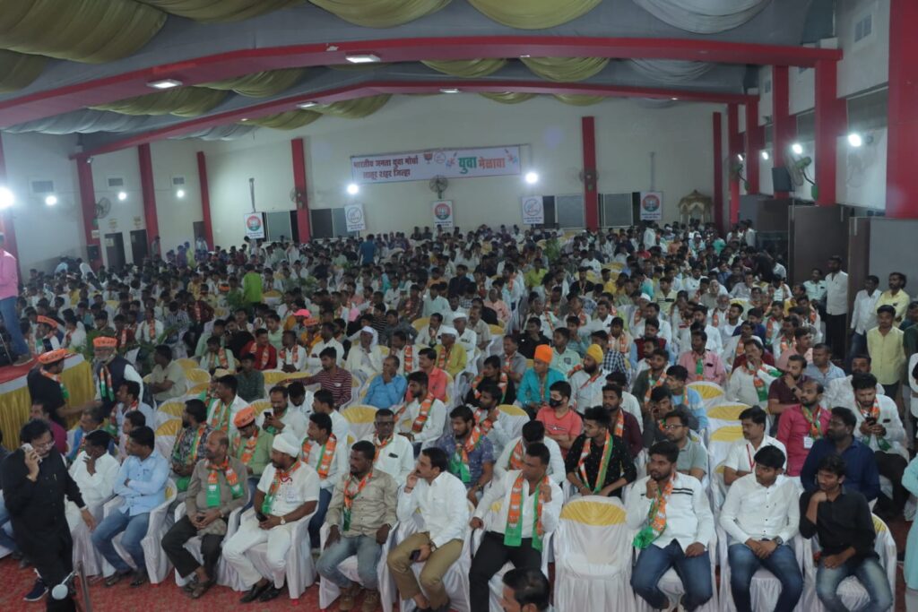 याप्रसंगी युवा मोर्चा प्रदेशाध्यक्ष राहुल लोणीकर, खा. सुधाकर श्रृंगारे, प्रदेश कार्यकारीण सदस्य शैलेश लाहोटी, शैलेश गोजमगुंडे आदींनी युवा मेळाव्यास संबोधीत केले. मेळाव्याचे प्रास्ताविक शहर जिल्हाध्यक्ष अजित पाटील कव्हेकर यांनी केले. मेळाव्याच्या सुरुवातीला भारत माता, छत्रपती शिवाजी महाराज, भारतरत्न डॉ. बाबासाहेब आंबेडकर यांच्या प्रतिमेस पुष्पहार अर्पण करून अभिवादन केले. यावेळी निलंगा तालुक्यातील उमरगा (हा.) येथील शहीद जवान श्रीधर चव्हाण यांना श्रद्धांजली वाहण्यात आली. या मेळाव्यास शहरासह लातूर जिल्ह्याच्या विविध भागातील युवक आणि युवती मोठ्या संख्येने उपस्थितीत होते.