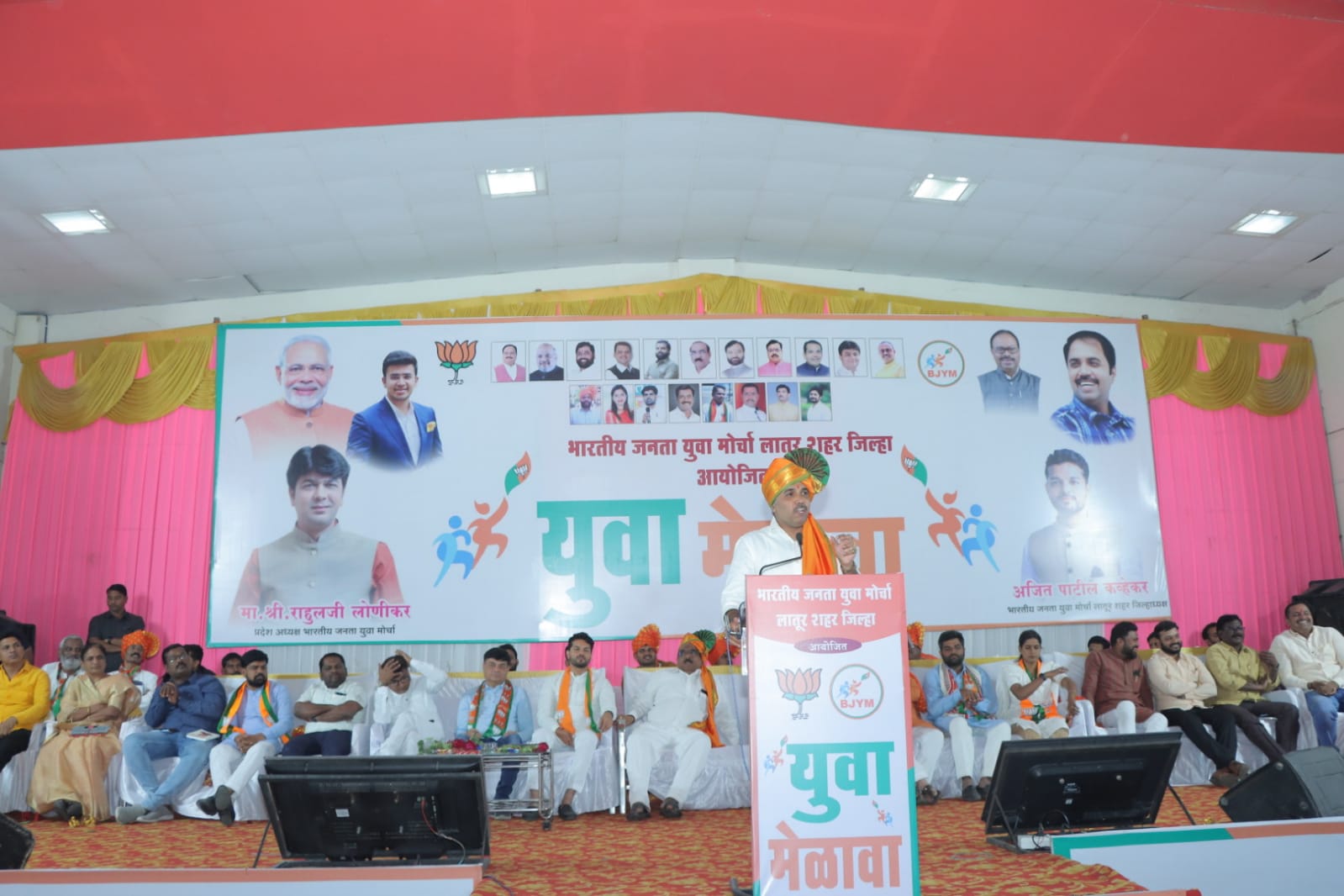 लातूर भारतीय जनता युवा मोर्चाच्या वतीने शहरातील रामकृष्ण मंगल कार्यालय येथे भाजयुमोचे प्रदेशाध्यक्ष राहुल लोणीकर यांच्या उपस्थितीत युवा मेळाव्याचे आयोजन करण्यात आलेले होते. यावेळी माजी मंत्री आ. निलंगेकर युवकांशी संवाद साधताना बोलत होते. या मेळाव्यास खा. सुधाकर श्रृंगारे, माजी जि.प. अध्यक्ष राहुल केंद्रे, प्रदेश कार्यकारणी सदस्य शैलेश लाहोटी, जिल्हा संघटन सरचिटणीस संजय दोरवे, मनपाचे माजी गटनेता शैलेश गोजमगुंडे, माजी स्थायी समिती सभापती दिपक मठपती, शहर सरचिटणीस अॅड. दिग्विजय काथवटे, युवा मोर्चा राष्ट्रीय कार्यकारणी सदस्य विवेकानंद उजळंबकर, युवा मोर्चा प्रदेश सचिव अरुण पाठक, प्रेरणा होनराव, अमोल निडवदे, गणेश गोमचाळे, दत्ता चेवले, प्रदेश कार्यकारणी सदस्य रविशंकर केंद्रे यांच्यासह जिल्हा युवा मोर्चाचे अध्यक्ष ज्ञानेश्वर चेवले, शहर जिल्हाध्यक्ष अजित पाटील कव्हेकर यांची व्यासपीठावर उपस्थिती होती.
