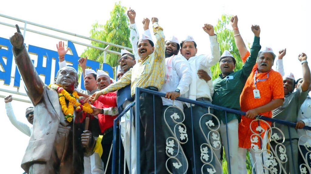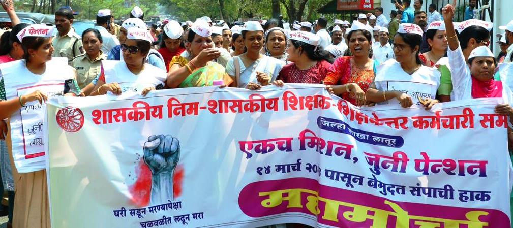 लातूर,दि.14( प्रतिनिधी) – जिल्ह्यातील शासकीय-निम शासकीय आणि शिक्षक-शिक्षकेतर कर्मचारी समन्वय समिती यांनी जुनी पेन्शन योजना लागू करण्यासाठी भारतरत्न डॉ.बाबासाहेब आंबेडकर यांच्या पुतळयाला अभिवादन करत बेमुदत संपास सुरुवात झाली. ‘एकच मिशन जुनी पेन्शन ’ म्हणत कर्मचाऱ्यांनी संपात उत्स्फूर्त सहभाग घेतला. महानगरपलिकासमोर टॉऊन हॉल येथून छत्रपती शिवाजी महाराज यांना पुष्पहार अर्पण करुन जुने जिल्हाधिकारी कार्यालय येथे महामोर्चाचा समारोप झाला. जुने जिल्हाधिकारी कार्यालयाच्या आवारात विविध संघटनांनी मार्गदर्शन केले. राज्य सरकारी कर्मचारी मध्यवर्ती संघटनेच्या राज्यव्यापी बेमुदत संपामध्ये सक्रिय सहभाग घेत पाठिंबाही दिला. या संपात सुरुवातीस लातूर शहरातील हजारोंच्या संख्येने शासकीय-निमशासकीय-शिक्षक व शिक्षकेत्तर कर्मचारी उत्स्फूर्तपणे सहभागी झाले होते. प्रत्येक तहसील कार्यालयाच्या आवारातही कर्मचाऱ्यांनी हिरीरीने सहभाग घेतला. पुढील काही दिवस हा संप सुरूच राहणार असून यासाठी विविध संघटनांचे सहकार्य मिळणार असल्याचे समन्वय समितीचे निमंत्रक तथा जिल्हा सरचिटणीस संजय कलशेट्टी म्हणाले. जुन्या पेंशन योजनेचे महत्त्व लक्षात घेऊन अधिकाधिक संख्येने कर्मचाऱ्यांनी या संपामध्ये सहभागी होण्याचे आवाहनही त्यांनी कर्मचाऱ्यांना केले. कलशेट्टी म्हणाले, जुनी पेंशन योजना ही भविष्यात सेवानिवृत्तीनंतर जगण्याचा आधार आहे, यासाठी संघटनेच्या माध्यमातून सातत्याने संघर्ष करावा लागेल. शासनाने जुनी पेंशन योजना लागू करावी, यासाठी बेमुदत संप राज्य मध्यवर्ती संघटनेने पुकारला आहे. या संपामध्ये नव्या व जुन्या पेन्शन योजनेतील सर्व कर्मचारी सक्रीय सहभाग घेत आहेत, ही आनंदाची बाब आहे. तरीही जुनी पेंशन लागू करण्यासाठी मध्यवर्ती संघटना व शासकीय-निम शासकीय शिक्षक-शिक्षकेतर कर्मचारी समन्वय समिती सर्व कर्मचाऱ्यांच्या पाठिशी खंबीरपणे उभी आहे, असेही कलशेट्टी म्हणाले.जिल्हाध्यक्ष बी .बी. गायकवाड, संस्थापक अध्यक्ष आर. एस. तांदळे, जिल्हा कार्याध्यक्ष महादेव पांचाळ, जिल्हा परिषद संघटनेचे अध्यक्ष संतोष माने, सचिव धुमाळ, तलाठी महासंघ जिल्हाध्यक्ष महेश हिप्परगे, ग्रामसेवक संघटनेचे अध्यक्ष अनंत सूर्यवंशी, जुनी पेन्शन संघटनेचे जिल्हाध्यक्ष तानाजी सोमवंशी, जुनी पेन्शन हक्क संघटनेचे अरविंद कुलगुर्ले, जुनी पेन्शन योजना राज्य समन्वयक दीपक येवते, माहिती व जनसंपर्क संघटनेचे विभागीय अध्यक्ष अशोक माळगे, कास्ट्राईब कर्मचारी महासंघाचे जिल्हा अध्यक्ष नितीन बनसोडे, दत्तात्रय सूर्यवंशी, कास्ट्राईब शिक्षक संघटनेचे अध्यक्ष सुभाष मस्के, चतुर्थ श्रेणी कर्मचारी संघटनेचे भाई श्रृंगार