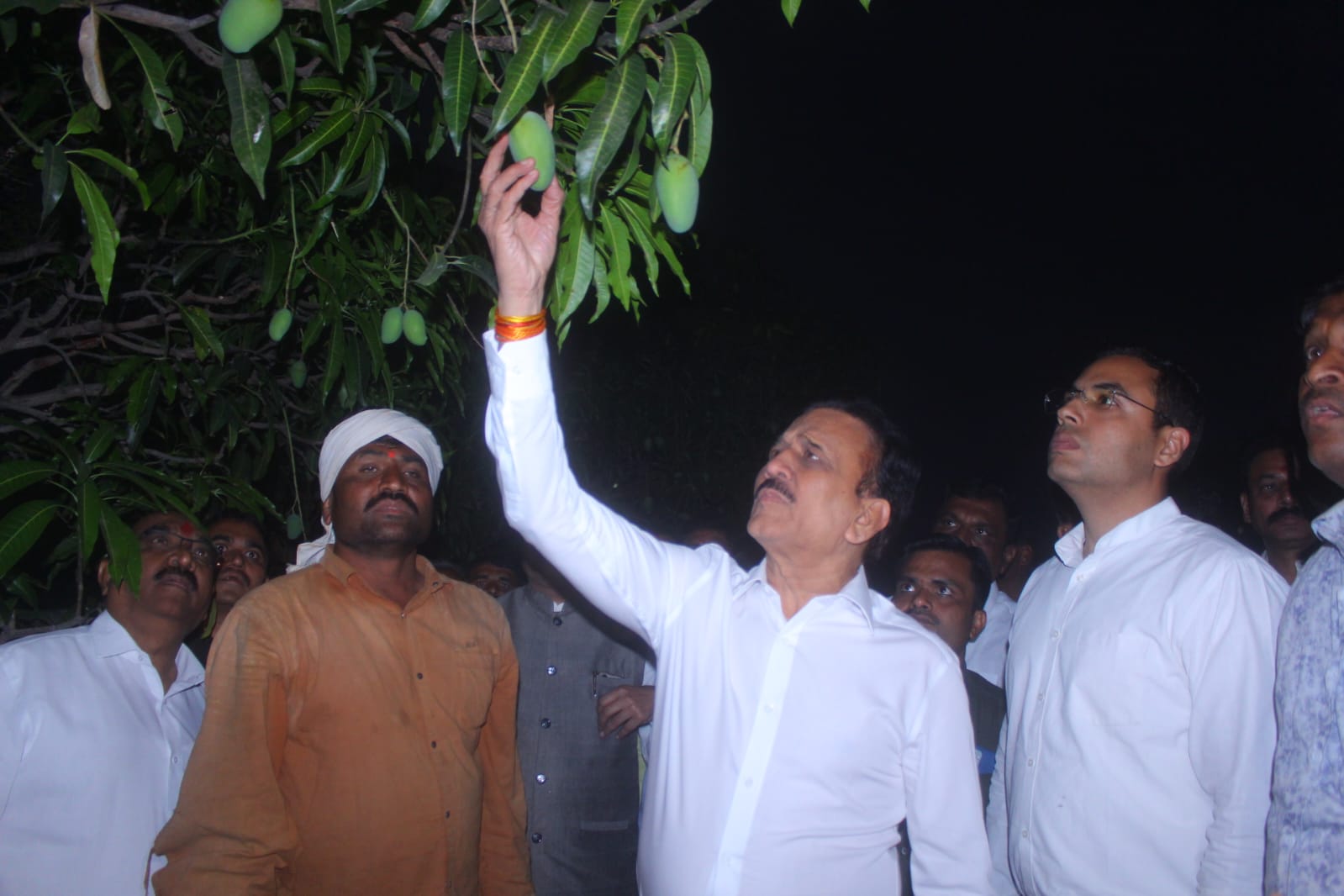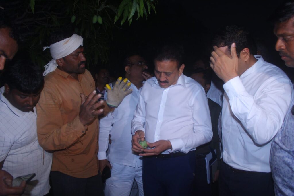 जिल्ह्यात गारपीट, अवकाळी पावसामुळे झालेल्या नुकसानीचा जिल्हाधिकारी कार्यालयातील बैठकीत आढावा घेतल्यानंतर पालकमंत्री गिरीश महाजन यांनी थेट शेतकऱ्यांच्या बांधावर जावून शेतपिकांच्या नुकसानीची पाहणी केली. रेणापूर तालुक्यातील रामवाडी येथील पंढरी उगिले यांच्या शेतातील आंब्याच्या बागेचे गारपिटीने झालेल्या नुकसानीची पालकमंत्री श्री. महाजन यांनी पाहणी केली. तसेच पानगाव फाटा येथील नुकसानग्रस्त पिकांची पाहणी करून शेतकऱ्यांशी चर्चा करून नुकसानीची माहिती घेतली. अवकाळी पाऊस आणि गारपिटीने झालेल्या नुकसानीचे पंचनामे दोन दिवसात पूर्ण करण्याचे आदेश देण्यात आले असून याबाबत अहवाल प्राप्त होताच शेतकऱ्यांना भरीव मदत केली जाईल. या नैसर्गिक संकटात शासन शेतकऱ्यांची पाठीशी असल्याची ग्वाही पालकमंत्री श्री. महाजन यांनी शेतकऱ्यांना दिली.