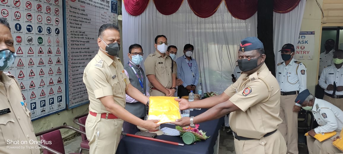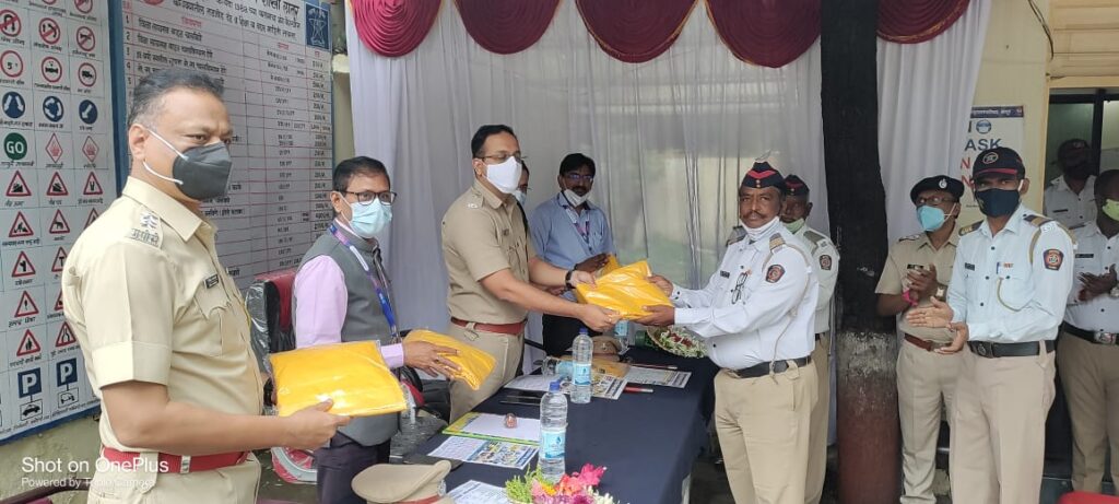 लातूर दि ३१ { दिपक पाटील } लातूर शहरातील वाहतूक शाखा ही लातूर शहरातील होणारी वाहतूक सुरळीत रहावी या करीता दिवसभर दिलेल्या ठिकाणी उभा टाकून वाहतूक सुरळीत करत असतात व पोलीस ठाण्यातील मोटरसायकल चार्ली हे आपल्या पोलीस स्टेशन हद्दीत काही अनुचित प्रकार घडू नये या साठी दिवसराञ पेट्रोलिंग करत असते या कामाचे सामाजिक बांधिलकीतून काही तरी करायला पाहीजेत या भावनेतून सध्या पावसाळ्याचे दिवस आहेत या भावनेतून स्टेट बँक ऑफ इंडीया शाखा चन्द्र नगर व अंबाजोगाई रोड येथील शाखा यांनी कर्मचाऱ्यांना १०० रेनकोट देण्यात आले. आज दिनांक ३१~०८~२१ रोजी सकाळी मा.पोलीस अधीक्षक निखिल पिंगळे, अप्पर पोलीस अधीक्षक हिम्मत जाधव, पोलीस उपाधीक्षक शहर जितेंद्र जगदाळे व ग पोलीस उपाधीक्षक ग्रामीण प्रिया पाटील व स्टेट बॅकेचे मॅनेजर व कर्मचारी यांच्या हस्ते कर्मचाऱ्यांना रेनकोट चे वाटप करण्यात आले तसेच पोलीस अधीक्षक निखिल पिंगळे यांच्या हस्ते वाहतूक नियमावली जनजागृती पञकाचे अनावरण करण्यात आले. सदरील कार्यक्रमाचे आयोजन पोलीस निरीक्षक वाहतूक शाखा सुनील बिर्ला यांच्या देखरेखीत सागर झुंजे, रवी कांबळे, जयराज गायकवाड, विनोद तरडे यांनी कार्यक्रम यशस्वी केला यात वाहतूक शाखेतील तसेच सर्व पोलिस ठाण्यातील मोटरसायकल चार्ली कर्मचारी उपस्थित होते.