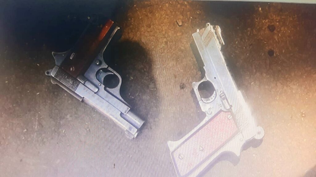 बेंबळी ( प्रतिनिधी) : समुद्रवाणी येथे उस्मानाबाद ते औसा रस्त्यावर दि. 08 ऑक्टोबर रोजी 06.00 ते 07.00 वा. दरम्यान अर्टीगा कार कार क्र. एम.एच. 06 बीएम 4833 चा व मोटारसायकल क्र. एम.एच. 25 ई 5305 चा अपघात झाल्याची बातमी बेंबळी पो.ठा. च्या पथकास मिळाली. यावर बेंबळी पो.ठा. चे सपोनि- श्री. शेंडगे यांसह पथक घटनास्थळी रवाना झाले. या अपघातात मोटारसायकल वरील वसंत श्रीरंग जाधव, रा. समुद्रवाणी, ता. उस्मानाबाद व त्यांच्या सोबतचे खंडु पांडुरंग कुंभार, रा. लासोना, ता. उस्मानाबाद हे दोघे गंभीर-किरकोळ जखमी झाले होते. पथकाने त्या दोघांना रुग्णालयात उपचारासाठी पाठवून अपघात स्थळावरील नमूद कारची तपसणी केली असता कारमधील चालक सिटच्या मागच्या बाजूच्या कप्प्यात मॅकझीन- काडतुस विरहीत दोन पिस्टल आढळुन आल्या.