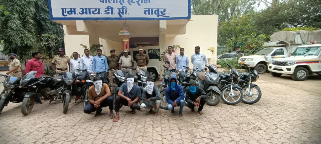 लातूर : { दिपक पाटील } एमआयडीसी पोलिसांना मोटरसायकल चोरीचा सुगावा लागल्याने मोटरसायकल चोरांचे रॅकेट उद्ध्वस्त करण्यात व आरोपींना अटक करण्यात पोलिसांना यश आले आहे. याप्रकरणी २ आरोपी गाड्या चोरणारे व चोरीच्या गाड्या विकत घेणारे ३ अशा ५ आरोपींना अटक करण्यात आली असून ११ मोटरसायकल जप्त करण्यात आल्या आहेत. लातूर शहरात तसेच जिल्ह्य़ातील मोटरसायकल चोरांकडून गाड्या चोरण्याचे प्रमाणात वाढ झाल्याने पोलीस अधीक्षक निखिल पिंगळे ,अप्पर पोलीस अधीक्षक अनुराग जैन,उपविभागीय पोलिस अधिकारी जितेंद्र जगदाळे यांच्या मार्गदर्शनात व एमआयडीसी पोलीस निरीक्षक संजीवन मिरकले यांच्या नेतृत्वात पोलिस उपनिरीक्षक संदीप कराड यांची सर्व टिम मोटरसायकल चोरांचा बिमोड करण्यासाठी कामाला लागली, टिम पोलिसांना गोपनीय खबऱ्यामार्फत मोटरसायकल चोरांची माहिती मिळाली. पोलिस उपनिरीक्षक संदीप कराड पोलिस हेड काॅन्स्टेबल भिमराव बेल्लाळे, शिंगाडे , पो.ना. अर्जुन राजपूत,प्रशांत ओगले, मुन्ना मदने, कज्जेवाड, शिंदाळकर, पो.शी.जाधव, दुधभाते, बोपले, ,चा.पो.शी. गोडबोले यांनी त्या ठिकाणी जाऊन खात्री केलेली संशयित मोटारसायकल त्या ठिकाणी मिळून आल्याने त्याबाबत आरोपी १} संतोष सोपान माने वय २४ रा. लोदगा ता.औसा.जि. लातूर यास विश्वासात घेऊन सखोल चौकशी करण्यात आली व त्याचा दुसरा साथीदार २} अंकुश राम कांबळे वय ३० रा.वसवाडी ता.जी.लातूर यांना ताब्यात घेतले असता त्यांनी अनेक लोकांना मोटरसायकली विक्री केल्याचे समजले. मोटरसायकल देताना ते कागदपत्र नंतर देतो, असे सांगत असे. या माहितीवरून त्यांना चौकशीकरिता ताब्यात घेऊन सखोल माहिती हाती आली. त्याने मागील कालावधीत वेळोवेळी १० ते २० हजार रुपये प्रत्येकी मोटरसायकली विक्री केल्याचे समजले, चोरीची मोटरसायकल कोण खरेदी केली याची माहिती घेतली असता, १} शेख सिद्धीक खय्यूम व २} लक्ष्मण मनोहर कांबळे दोघंही राहणार सकपाळ नगर, लातूर ३} अदील उस्मान कुरेशी रा.हत्ते कार्नर लातूर यांना ताब्यात घेऊन विविध पोलीस स्टेशन हद्दीतील वेगवेगळ्या चोरीच्या ११ मोटरसायकल असा ७ लाख ७५ हजार रूपयांचा मुद्देमाल जप्त करण्यात आला, पोलीस स्टेशनच्या गुन्हे प्रकटीकरण विभागाने काम कौशल्याने केले. या कारवाईत पाच आरोपींना अटक करून एकूण ११ मोटरसायकल हस्तगत केली आहेत. मोटरसायकल चोरी करणारे व विक्री करणारे यांनी संगनमताने सामान्य लोकांना विशेषतः खेड्यातील लोकांना गाडीचे कागदपत्र नंतर देतो असे सांगून चोरीच्या मोटर सायकल विक्री करण्याची पद्धत अवलंबल्याचे समोर आले आहे. कोणीही नागरिकांनी विना कागदपत्र वाहन विकत घेऊ नये अशी वाहने चोरीची असल्याचे समजल्यानंतर पोलिस कारवाईला सामोरे जावे लागते, असे आवाह
