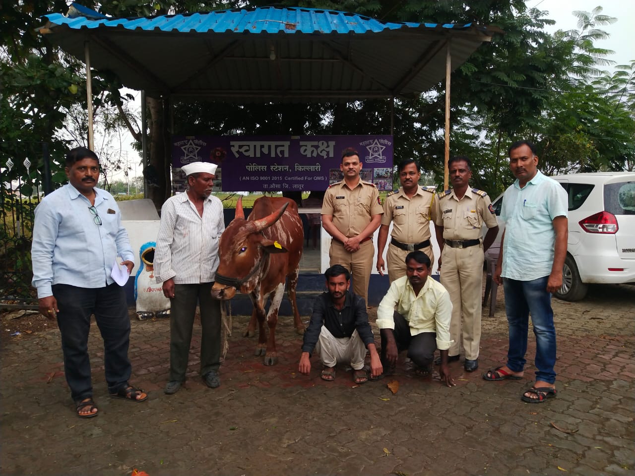 किल्लारी :- { प्रतिनिधी} किल्लारी पोलीस स्टेशन हद्दीत गाढवेवाडी येथील शेतातून काल दि 18/11/2021 रोजी रात्री बैल चोरीची घटना घडली होती,त्याबाबत किल्लारी पोलीस स्टेशनला गु .र .नं . 232/2021 आईपीसी 379 प्रमाणे गुन्हा दाखल केला आहे.सदर गुन्ह्याचा तपास पो हवा उस्तर्गे करत आहेत. रात्रगस्ती वरील पोलीस नाईक साळुंखे यानी लागलीच गोपनीय माहिती काढली असता त्यात सदरची चोरी गाढवेवाडी तांडा येथील 1)विकास प्रभू चव्हाण 2)पप्पू श्यामराव राठोड 3)विजयकुमार वसंत राठोड यांनी केल्याचे निष्पन्न झाले.त्यातील पप्पू राठोड व विजयकुमार राठोड या 2 आरोपींना अटक करुन चोरलेला बैल ताब्यात घेण्यात आला आहे. सदर कामगिरी मुळे विनायक निंबाळकर या शेतकरी यांनी किल्लारी पोलीस स्टेशन च्या टीम स्टाफचे आभार व्यक्त केले.सदरची कामगिरी सहाय्यक पोलीस निरीक्षक सुनिल गायकवाड,पो. हवा सचिन उस्तर्गे,पो. ना. साळुंखे,पो. हवा. मर्डे यानी केली.